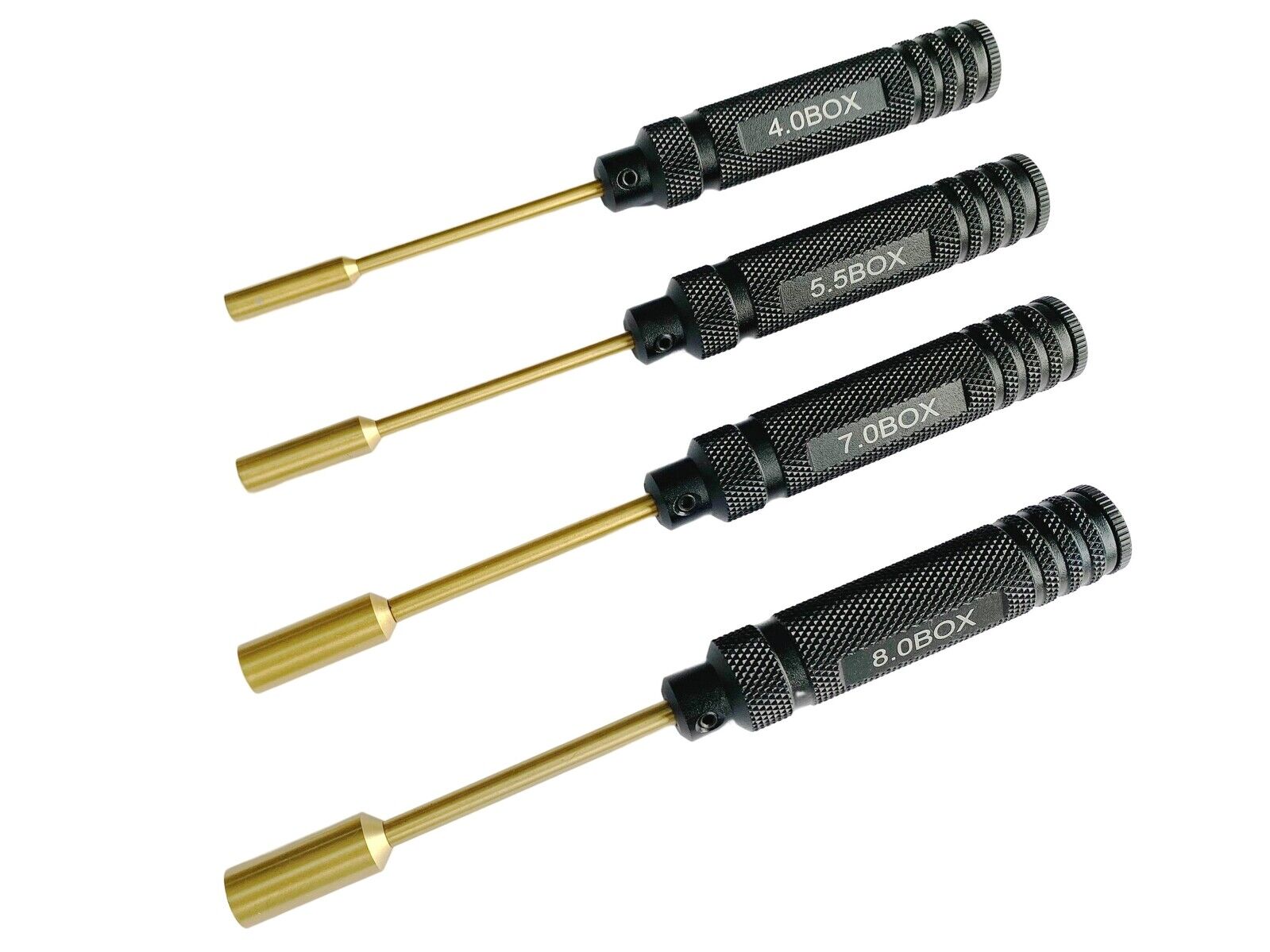 I'M RC 4PC HEX SCREWDRIVER CHROME HEX SOCKETS TITANIUM HEX TIPS Box 4.0/5.5/7.0/8.0mm Tips Manufactured by High quality durable alloy with Titanium plated.